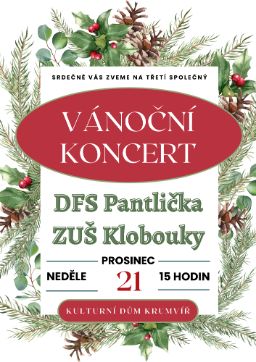 Srdečně vás zveme na třetí společný vánoční koncert DFS Pantlička a ZUŠ Klobouky u Brna, který se koná 21. 12. v 15:00 v KD Krumvíř.