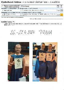Výsledky v ústředním kole soutěže ve hře na klavír