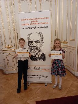 Ze ZUŠ Klobouky u Brna se do Prahy vydaly 3 dvojice, které soutěžily ve čtyřruční hře. Nejmladšími byli teprve osmiletí Anna Křístková a Daniel Saifrt. Byla to jejich první soutěž ve čtyřruční hře a za své krásné vystoupení získali od poroty Zlaté pásmo. V kategorii do 12 let soutěžila pak dvojice Amálie Dvořáková s Natálií Horákovou a ty si z Prahy odvezly Stříbrné pásmo. Poslední dvojicí bylo duo Ema Karafiátová a Isabella Nečasová (ze ZUŠ Mikulov - p. uč. Silvana Karafiátová), které soutěžilo v kategorii do 13 let. Děvčata získala Zlaté pásmo a zároveň se staly i vítězkami své věkové kategorie. Obdržely i zvláštní ocenění poroty za provedení vlastní skladby. Všichni žáci jsou ze třídy pí. učitelky Bc. Lenky Koudelkové. Soutěžícím i paní učitelce blahopřejeme k umístění v soutěži.