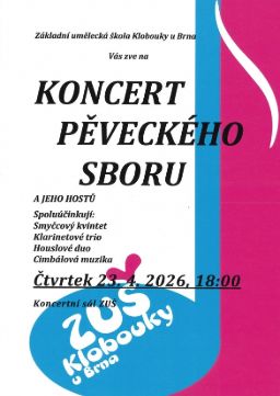 Základní umělecká škola Klobouky u Brna vás zve na Koncert pěveckého sboru, který se koná 23. 4. 2026 v 18:00 v koncertním sále ZUŠ.
